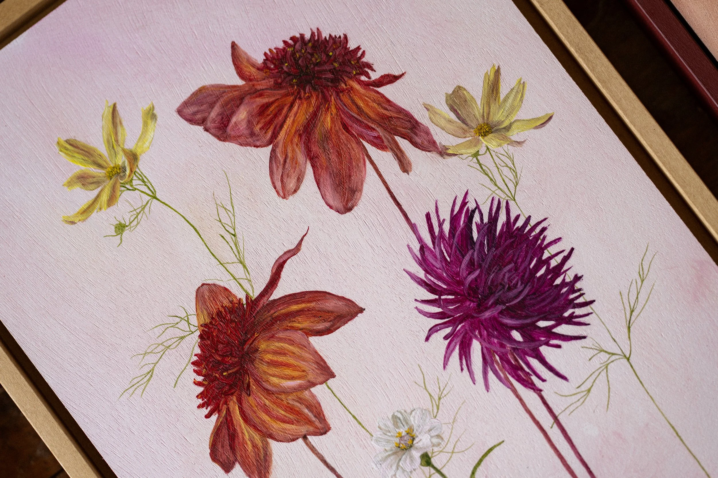 Quick View Cosmos £200.00 Add to basket Added! Quick View Pink cosmos £130.00 Sold out Sold Out Added! Quick View Pink dahila £140.00 Sold out Sold Out Added! Quick View Peaches & vanilla dahlia £140.00 Sold out Sold Out Added! Quick View Red dahlia £200.00 Add to basket Added! Quick View Dahlias and cosmos £295.00 Add to basket Added! Quick View Dahlia £275.00 Add to basket Added! Quick View Poppy duo £275.00 Sold out Sold Out Added! Quick View Ammi £120.00 Sold out Sold Out Added! Quick View Sky blue garden £350.00 Add to basket Added! Quick View Pink Scabious £130.00 Sold out Sold Out Added! Quick View Golden light print from £65.00 Frame: Select Frame Print only Print in Oak Frame Add To Cart Added! Quick View Meadow print from £40.00 Frame: Select Frame Print only Print in oak frame Add To Cart Added! Quick View Wild garden print from £65.00 Frame: Select Frame Print only Print in oak frame Add To Cart Added!